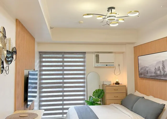ベッドルーム1室のStudio Suite At Fairway Terraces Near Naia T3 マニラ市はフィリピン・エアフォース・エアロスペース・ミュージアムから歩いて25分の場所に位置しており、周辺のさまざまな観光スポットにも行きやすいです。